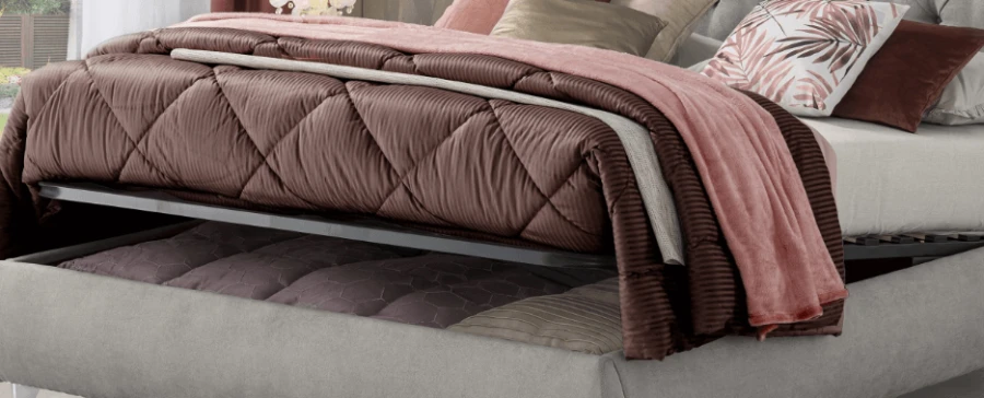 La tête de lit haute, matelassée et finie avec des coutures apparentes, offre un soutien confortable et un look classique. Le compartiment de rangement est facilement accessible en soulevant le sommier à lattes ranger dans le compartiment tout ce qui ne rentre pas dans l'armoire Disponible en différentes couleurs