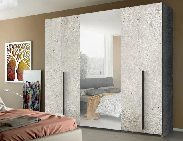 - Armoire 6 portes battantes avec miroir central, 5 étagères et 3 tringles
